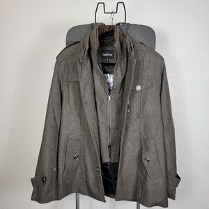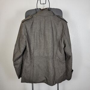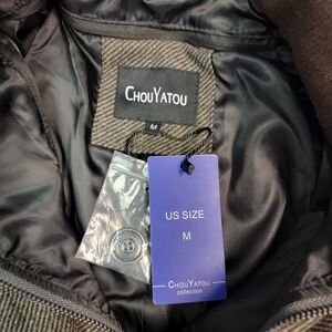 ChouYatou Men's Grey Full Zip Long Sleeve Button Front Pea Coat Jacket Size M