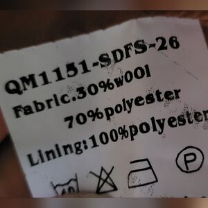 Fabric: Wool, Polyester; Lining: 100%polyester