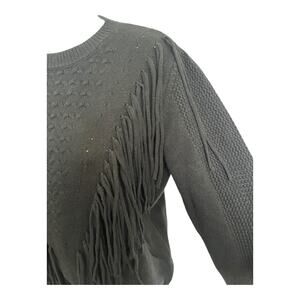 Chouyatou Sweater Fringe Black Patterned Knit Pullover Crew Neck Medium NWT