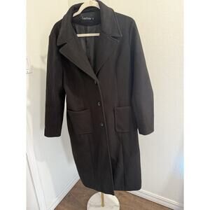 Chouyatou Women's Shawl Collar Long Single Breasted Pea Coat Black - Medium