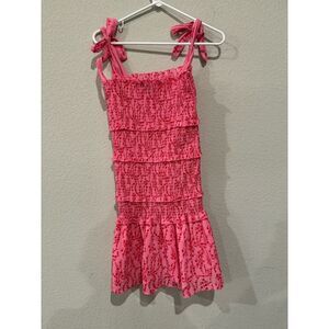 Chouyatou Women's Size Medium Ruched Tie Strap Tiered Mini Summer Dress Pink