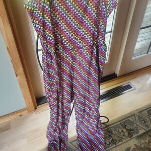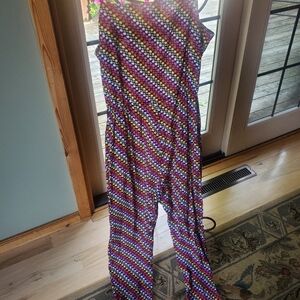 Chow Brazil Vintage Spaghetti Strap Multicolored Cinched Sz M Jumpsuit w Pockets
