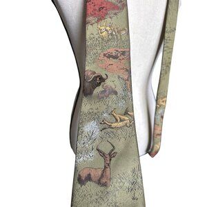 Chravateur Endangered Wildlife Tie Pattern Silk Tie With Animals in Nature Scene