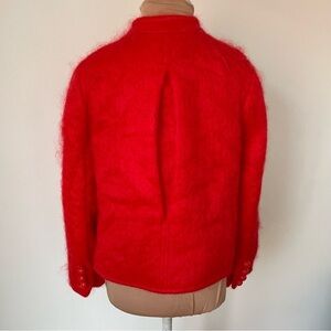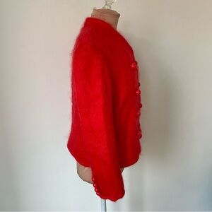 ABSOLUTELY GORGEOUS + FUN + RaRe! Totally a *statement* piece that will keep you cozy and noticed! Made in USA, Mohair, wool, fully lined and fun/unique/eccentric/kitsch bobble buttons at front and at cuffs! Pair w/ a cute mini + funky tights!