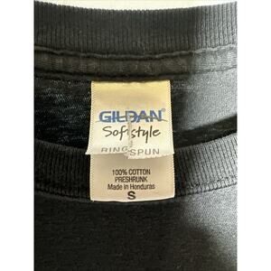 This Chris Brown Tour T-Shirt is a must-have for any hip hop fan. The black shirt features a solid pattern with a heartbreak on a full moon design. The short sleeve shirt is made of 100% cotton and is machine washable. It comes in a size small (S) with a regular fit, and is perfect for women who want a comfortable and stylish look. The casual sleeve type adds to the shirt's versatility, making it suitable for any occasion. The shirt is branded with Gildan, and is a basic piece that can be paired with any bottom.