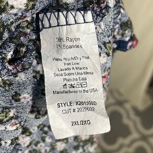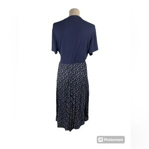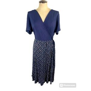 Chris & Carol Faux Wrap Navy Blue/Floral Pattern Dress Size 2XL