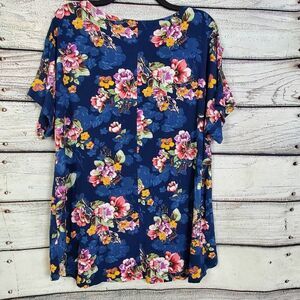 Chris & Carol Plus 1X Navy Floral Dolman Sleeve Tunic Blouse Made in USA