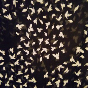Chris & Carol Sheer Tank/Cami Size Large. Black with White Bird all over design and button keyhole back. Cool and flowy, perfect for summer. Great by itself or under a suit jacket/sweater. Has a hi-low hem as well as slits on both sides for extra room around the hips.