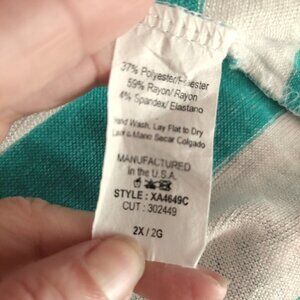 Chris & Carol Women's Plus Size Green & White Striped Open Front Cardigan