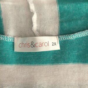 Chris & Carol Women's Plus Size Green & White Striped Open Front Cardigan