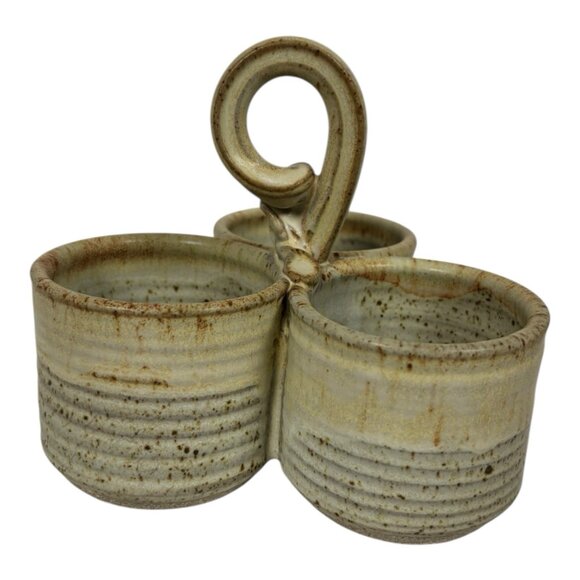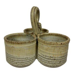 Preowned Chris Davis Art Pottery Condiment Server Signed Perkins Cove Ogunquit Maine