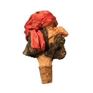 Add character to wine bottles with this detailed, hand-carved pirate bottle stopper. Its cork base ensures a snug fit, sealing your beverages.