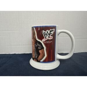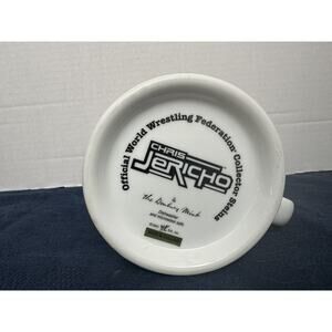 The product is a Chris Jericho WWF Official World Wrestling Federation Collector Steins 2001 Mug from The Danbury Mint. This mug is a collector's item featuring the wrestler Chris Jericho and is part of the WWF league, known for its wrestling sport. It is a unique and collectible item for fans of wrestling and Chris Jericho, perfect for displaying or using for beverages.