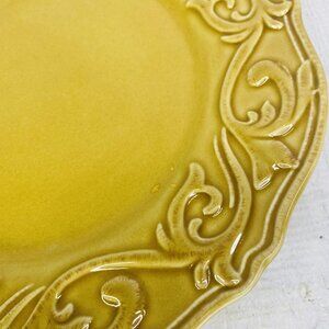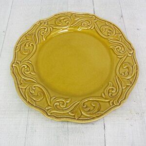 Chris Madden JC Penny CORVELLA GOLD Emboss Scroll Stoneware Dinner Plate Set 4