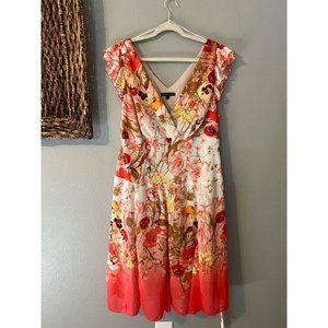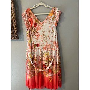 Chris McLaughlin A Line Dress 18W Belt Floral Flowy Stretch Career Church