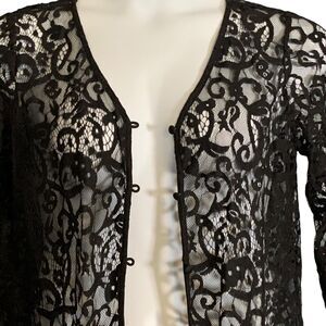 Chris McLaughlin Black Lace Cardigan Large Gothic Glam Sweater Tassel Fringe NEW
