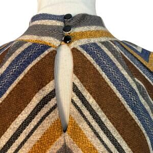 Elevate your wardrobe with this stunning Chris McLaughlin Fall Colors Chevron Slimming Dress in size 16. The high neckline and button closure add a touch of elegance to this dress, while the long sleeves and lightweight material make it perfect for any season. The dress features a beautiful chevron pattern in multicolor and a bohemian theme that adds a unique touch to your style. This dress is perfect for any occasion, whether it's a party, cocktail event, or formal business meeting. The dress is made of polyester and spandex, and it is recommended to hand wash only. The dress is designed with slimming features and a keyhole in the back, making it a must-have for any fashion-forward woman. Made in Vietnam, this dress is a perfect addition to your wardrobe.