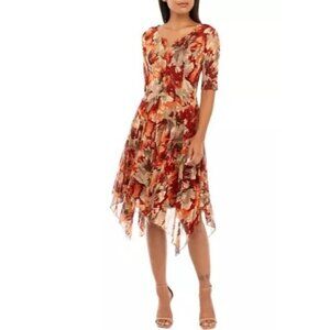 Chris McLaughlin Floral Short Sleeve Mesh Handkerchief Hem Dress Size 4