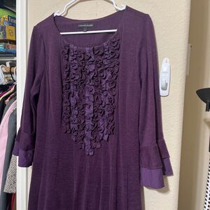 Chris McLaughlin Purple Dress Womens 18W sheath knit ruffle front career