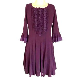 Chris McLaughlin Purple Dress sz 18 fit flare knee length ruffle front knit