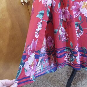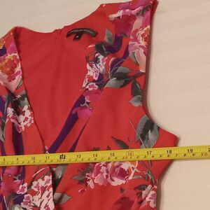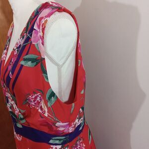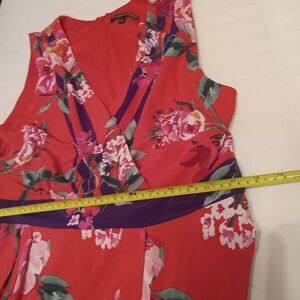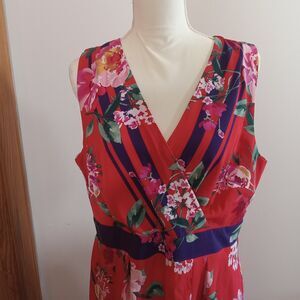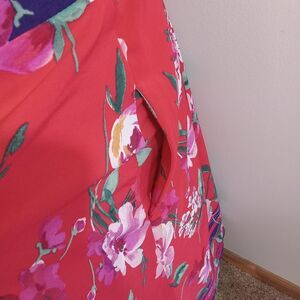 Chris McLaughlin Size 16 Dress Red Pink White Floral Maxi Faux Wraparound. Very pretty dress. Vibrant. Flowy. Great pre-owned condition. No holes or stains. Smoke free and pet free. See pics for measurements. See my other items. Thanks for your support.