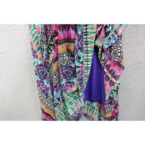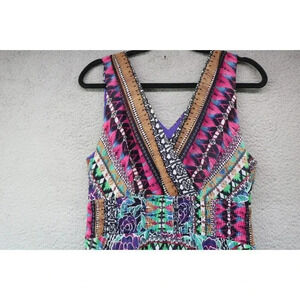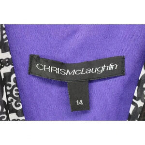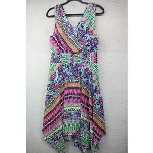 Chris McLaughlin Sleeveless Midi Dress-Size 14-Hankerchief-Hem-BOHO-Lined. The material is 100% Polyester. Laying Flat the dress measures armpit to armpit 17'' and 46'' in Length.