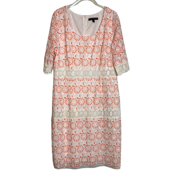 Chris McLaughlin Women's Dress Size 16 White Orange Floral Midi Lined Dressy Wedding Guest