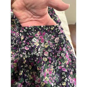 Chris McLaughlin woman’s black lined floral sleeveless midi dress size 6. Has 3 decorative buttons in front. Scoop neck. Two pockets in front. Pit to pit measures approximately 16.5”. Shoulder to hem measures approximately 35.5”. Good pre-owned condition.