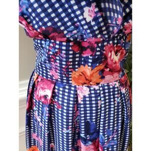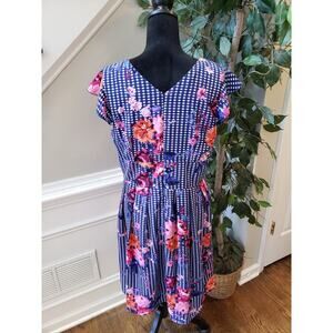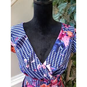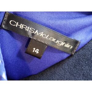 Chris Mclaughlin Sheath Dress Women's 14 Blue Floral Ruffle V-Neck Short Sleeve