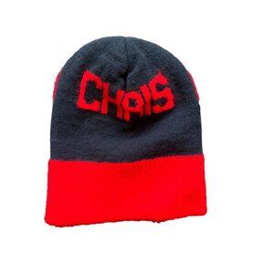 Chris Monogram Navy & Red Beanie Hat Warm Winter Knit
