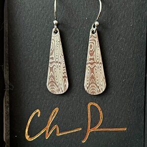 Chris Ploof Damascus stainless steel teardrop dangle Earrings EUC