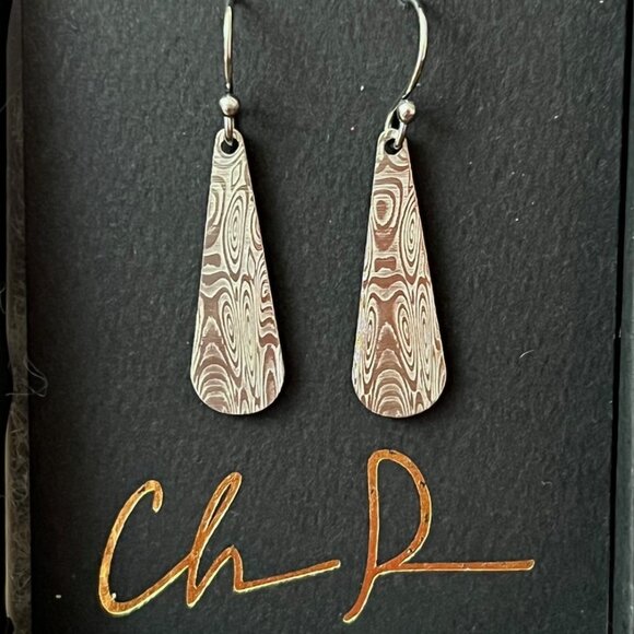 Chris Ploof Damascus stainless steel teardrop dangle Earrings EUC