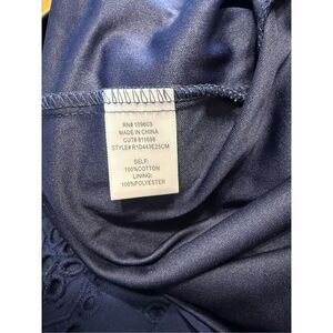 Chris McLaughlin Women's Flutter Sleeve Eyelet Ruffle Front Navy Blue Dress 6