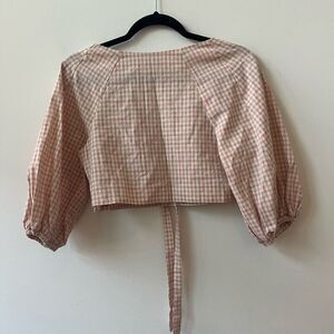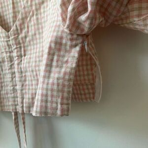 Chriselle x J.O.A Women's Pink Gingham Balloon Sleeve V-Neck Crop Top Size XS