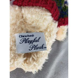 Chrisha Playful Plush Tan Bear with Colorful Sweater Stuffed Teddy Bear.