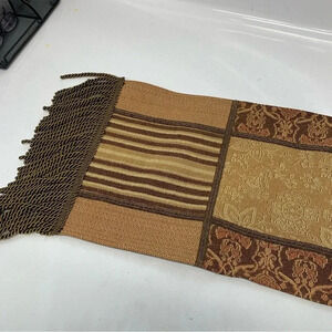 Chriss Madden Table Runner Brocade Braided Tassel Fringe Green Brown 13 X 58"
