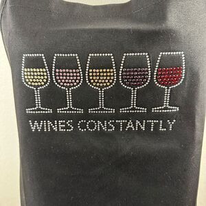Chris’s Stuff Black Rhinestone “Wines Constantly”Wine Theme Apron. New Without Tags.