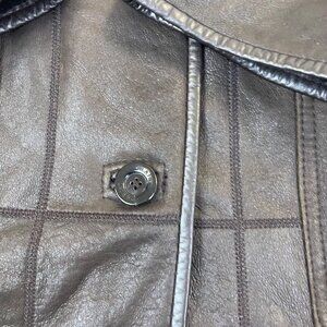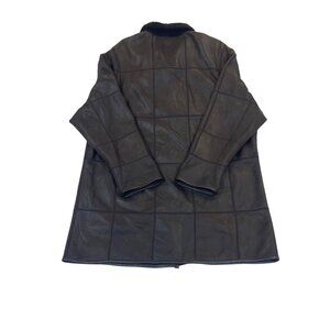 Christ Womens Dark Brown Leather Coat Button Front Shearling Collar Longline Sz