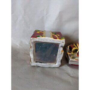 Christ gift box glass red green gold Holiday 4.5" h x 3" wide