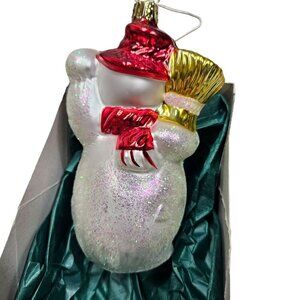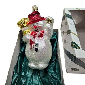 Christborn made in Germany Vintage Snowman Christmas Ornament W/ Broom And Star