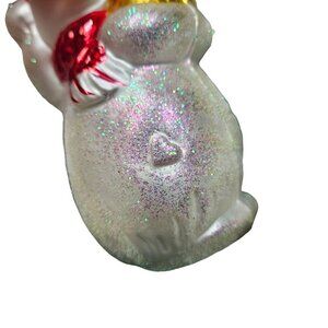 This delightful ornament captures the essence of winter wonderland. The snowman, resplendent in glitter, dons a vibrant red hat and scarf, holding a golden broom and star. A charming addition to your holiday decor, it brings festive cheer and nostalgia, evoking memories of snow-filled winters and joyful celebrations.
