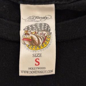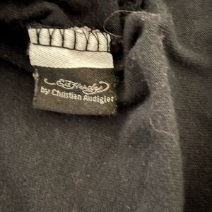 Black t-shirt featuring a bold graphic label. Ed Hardy design by Christian Audigier.