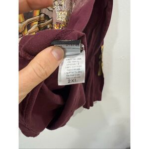 Maroon long sleeve with graphic print and rhinestone embellishments