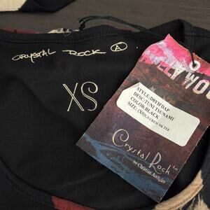 Christian Audigier Crystal Rock Shirt Women XS Y2K Tuni Tsunami Rhinestone Tunic