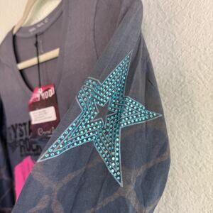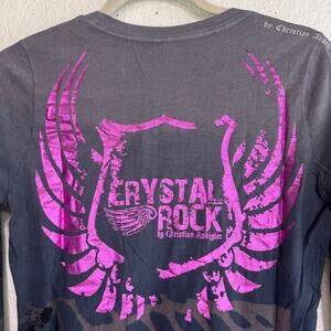 Christian Audigier Crystal Rock Y2K Shirt Women Large Rocker Girl Tee Tunic Top
