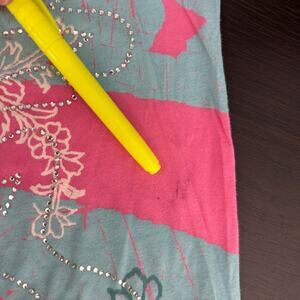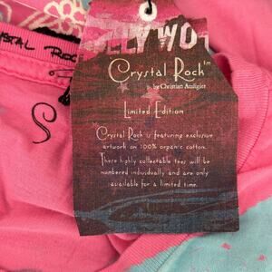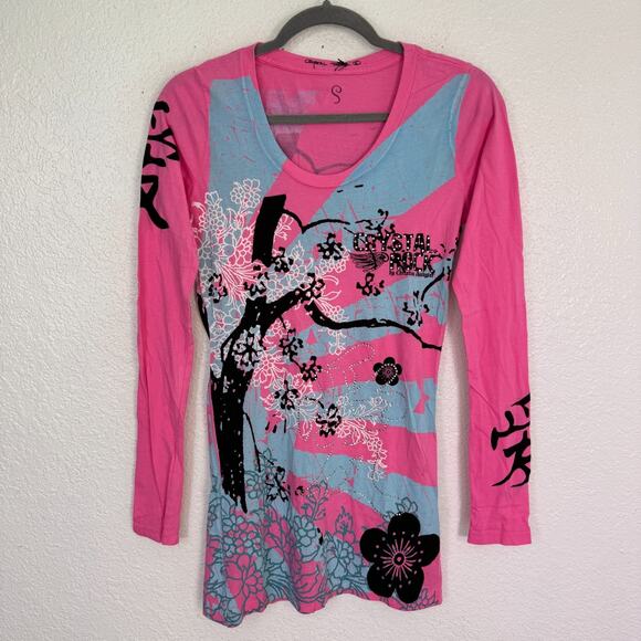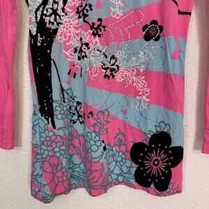 Christian Audigier Crystal Rock Y2K Shirt Womens Small Tokyo Sun Cherry Blossom