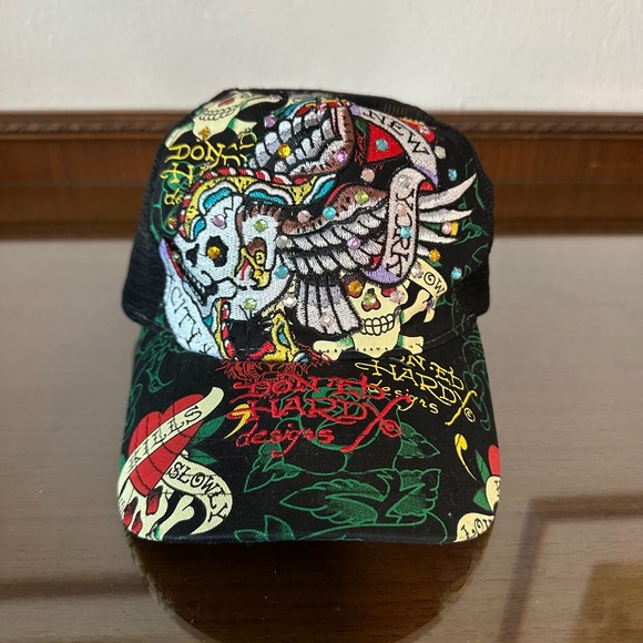 Christian Audigier Don Ed Hardy Hat Cap Snap Back Love Kills Trucker Mesh Jewels