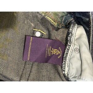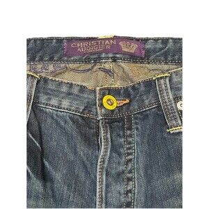 The Christian Audigier Ed Hardy Y2K Panther King Embroidered Jeans in size 36x32 are a stylish piece of men's clothing that combines a solid dark wash with intricate embroidered accents. Made of cotton denim in a regular fit, these vintage-inspired jeans feature a wide-leg style with a 5-pocket design and a button closure. The blue color and various themes such as nature, art, and hipster give these jeans a unique and edgy look, perfect for those who embrace a grunge or Gothic aesthetic. With a comfortable and distressed feel, these jeans are machine washable and suitable for all seasons.