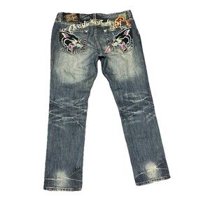 Christian Audigier Ed Hardy Y2K Panther King Embroidered Jeans 36x32 Skater