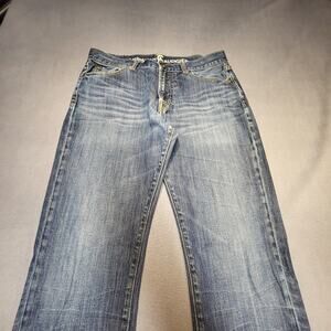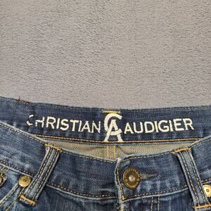 Christian Audigier Jeans Mens 32x33 Blue Straight Leg Distressed Stretch Denim